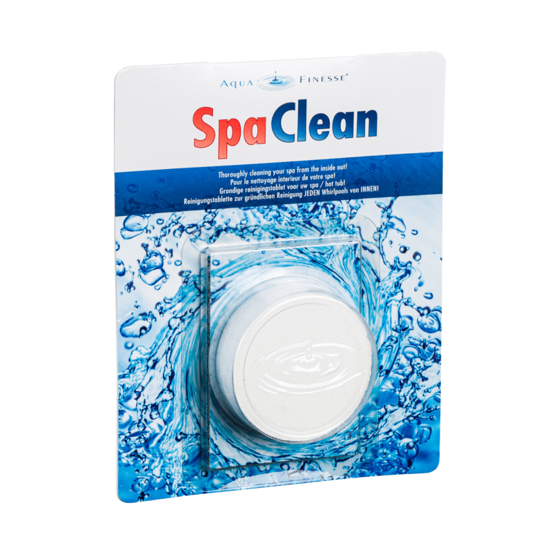 Tabletele AquaFinesse SpaClean se folosesc pentru curatarea tevilor si a suprafetelor interioare ale spa-ului dumneavoastra. Chiar si in cazul unui spa nou, este posibil ca in tevi sa ramana apa, deoarece producatorii testeaza mai intai spa-ul inainte de a fi lansat pe piata. Acest lucru creeaza adesea biofilm si calcar in tevi chiar inainte de a incepe sa utilizati spa-ul, ceea ce are ca efect reducerea duratei de viata a spa-ului si probleme legate de calitatea apei.